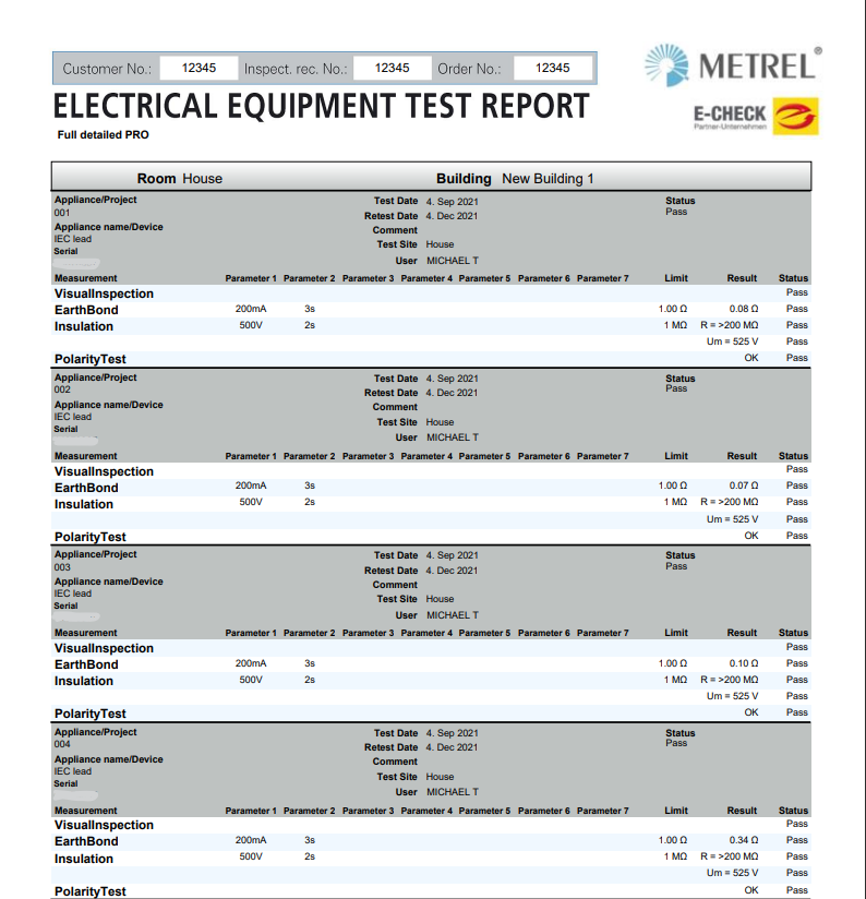 Once all testing has been completed a full report is available that shows each tested item along with the measurements.